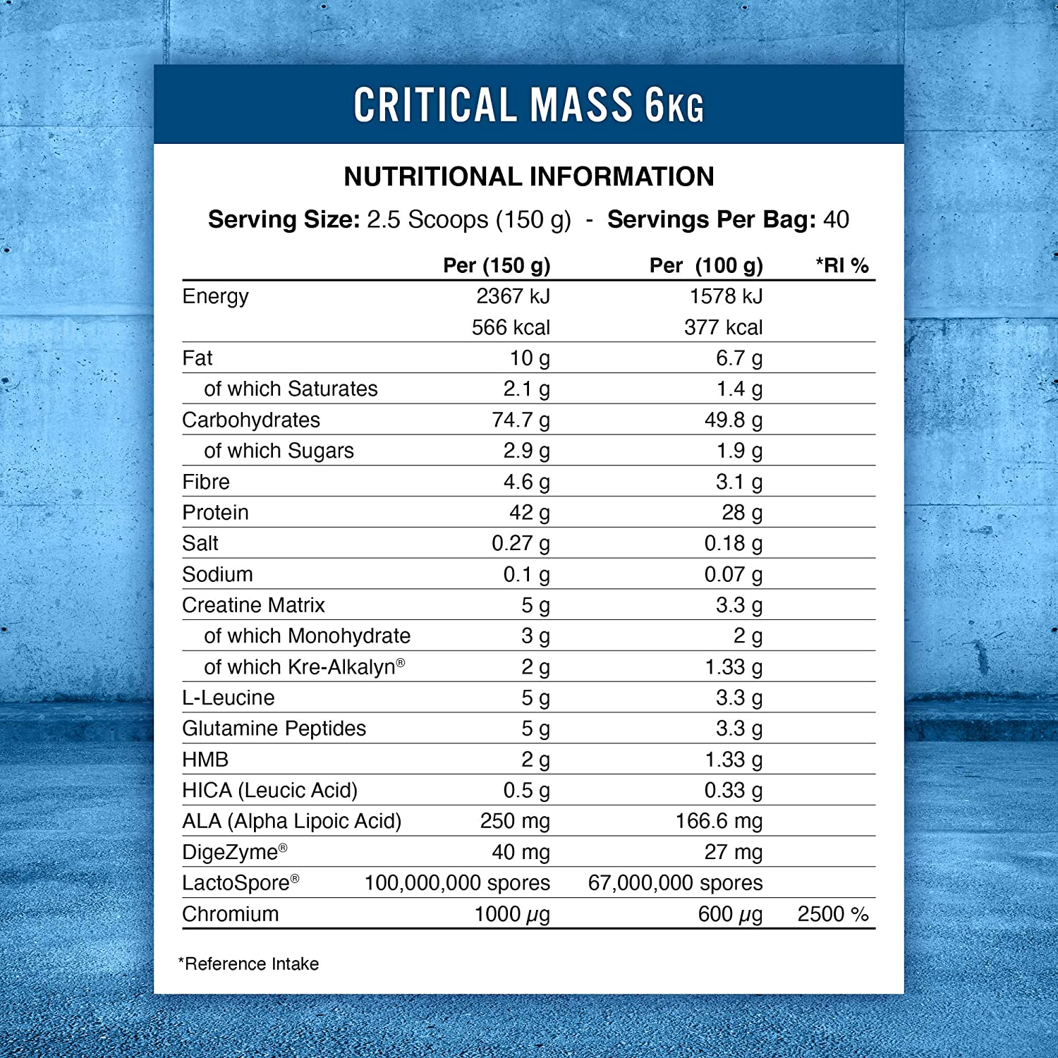 Critical Mass Professional est tout simplement le supplément de gain de masse préféré et fiable du Royaume-Uni. Il utilise des ingrédients de la plus haute qualité, qui ont tous été soigneusement sélectionnés pour leur capacité à fournir du LEAN MASS GAINZ de qualité, vous permettant d'accumuler les calories pour votre compte quotidien.
